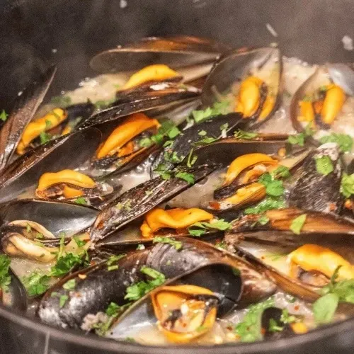 - Feketekagyló fehérboros mártásban, baguette