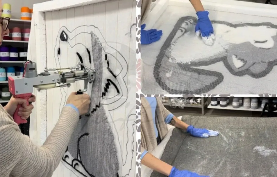 A workshop végén a szőnyeget ragasztással rögzítik, majd csúszásmentes filc hátlappal látják el. Rövid hőpisztolyos szárítást követően a felületet egyenletesre igazítják (trimmelik), végül pedig kialakítják a végleges formát. Az elkészült szőnyeget akár azonnal haza is vihetitek.